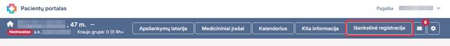 Paciento juostoje paspaudus ant mygtuko „Išankstinė registracija“: