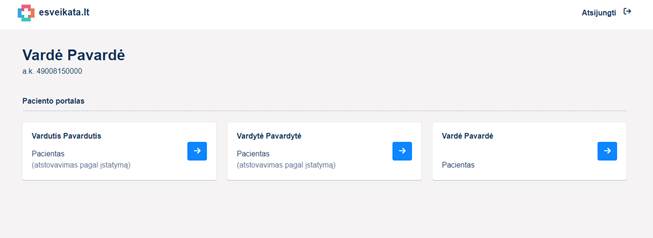 prisijungimas su atstovaujamų pacientų sąrašu jungtis