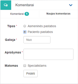 Komentaro tipas – pacientų portale rodomi šie