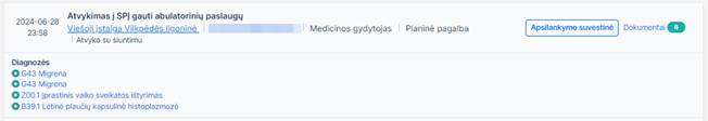 diagnozės. Visus dokumento duomenis galima peržiūrėti