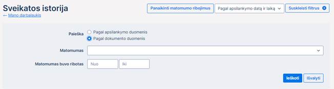 matomumas ribojamas). Matomumo ribojimas galimas tik medicininiams dokumentams