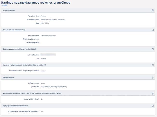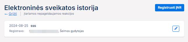 Norint peržiūrėti konkrečią ĮNR reikia sąraše paspausti du kartus ant norimo įrašo ir bus atidaryta peržiūros forma.