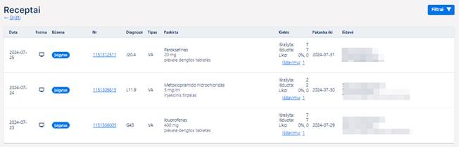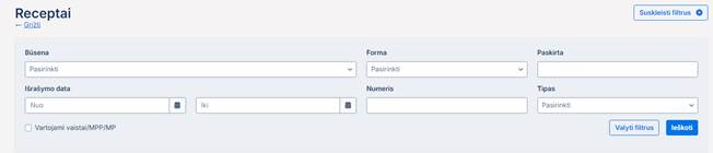 Galimi bloko Receptai filtrai ir juos atitinkantys elektroniniai receptų dokumentai:
