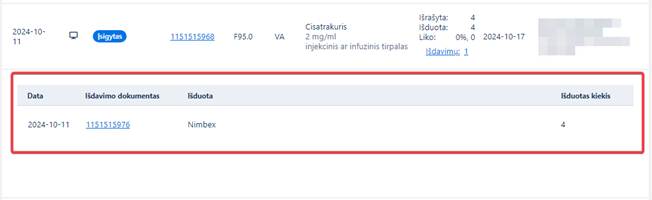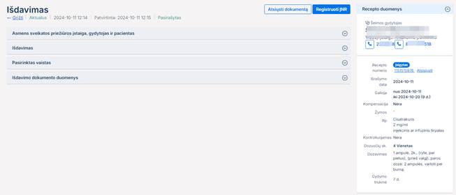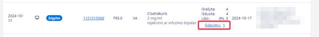išdavimo dokumentus. Norint tai atlikti prie recepto paspausti