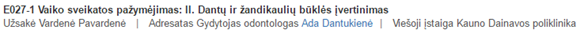 E027-1 pažymos II daliai, jeigu nurodytas konkretus