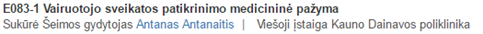 Pažymoms E047 Privalomojo sveikatos patikrinimo medicininė