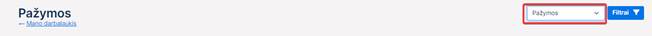 1. Iškviesti pažymų sąrašą (žr. skyrių 4.18.1 Peržiūrėti pažymų sąrašą), paspaudus Pažymos išskleidžiamame meniu puslapio viršutiniame dešiniajame kampe.