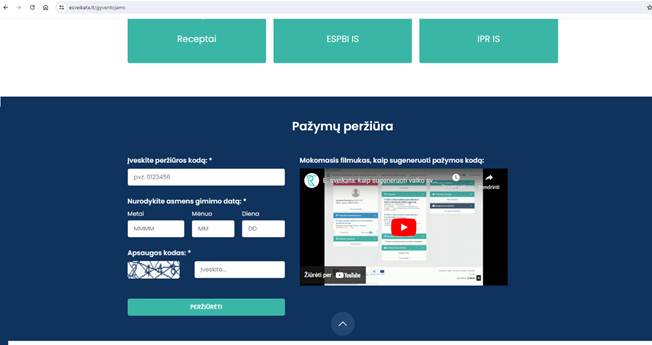 pažymos peržiūros kodą ir paciento, kuriam buvo