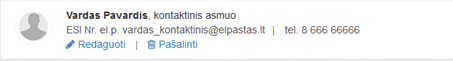 Kontaktinė informacija bloke naudotojas gali įvesti arba pakeisti šiuos duomenis:
