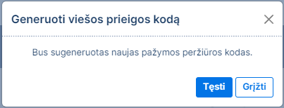 Sukūrus naują pažymos peržiūros kodą, ankstesnis pažymos peržiūros kodas nustoja galioti.