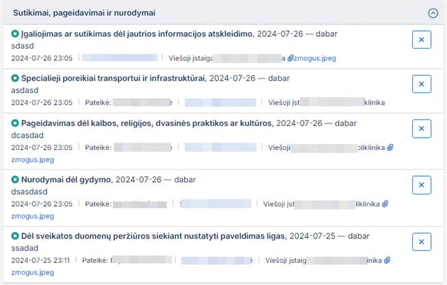 14 paveikslas. Blokas Sutikimai, pageidavimai ir nurodymai
