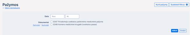 42 paveikslas. Paciento pažymų paieškos laukai darbdavio atstovui
